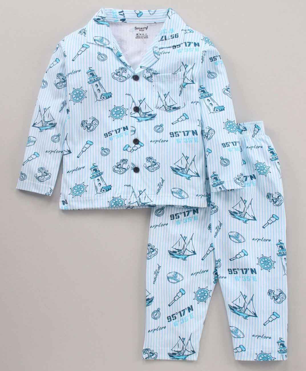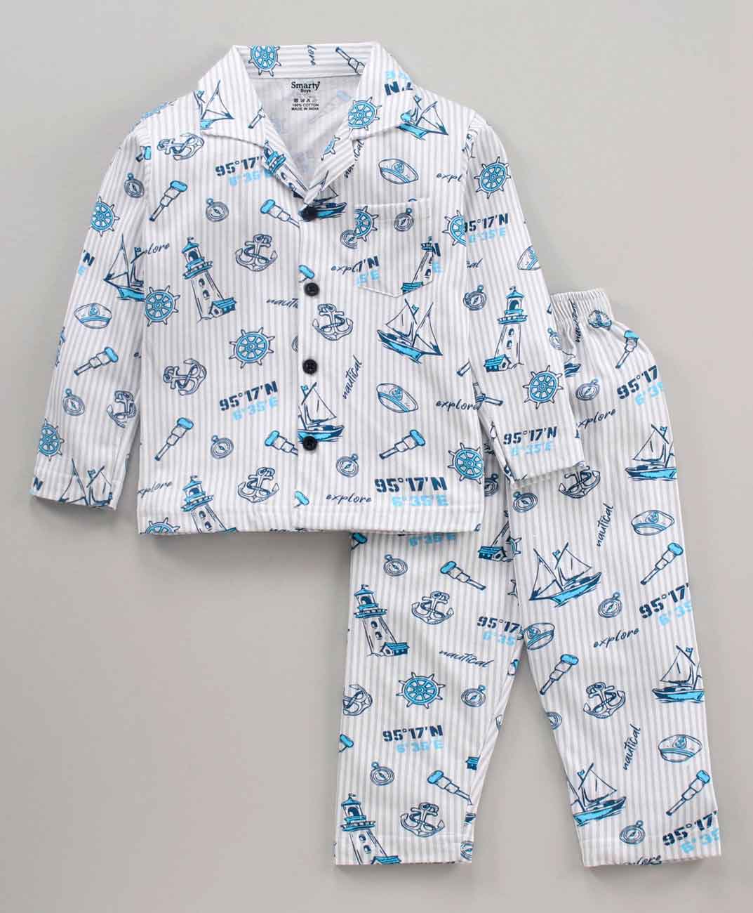 Cotton Sinker Full Sleeves Night Suit Cars Print with Ship Applique