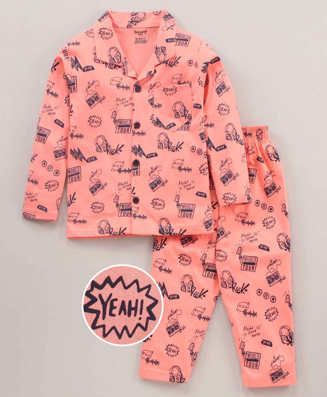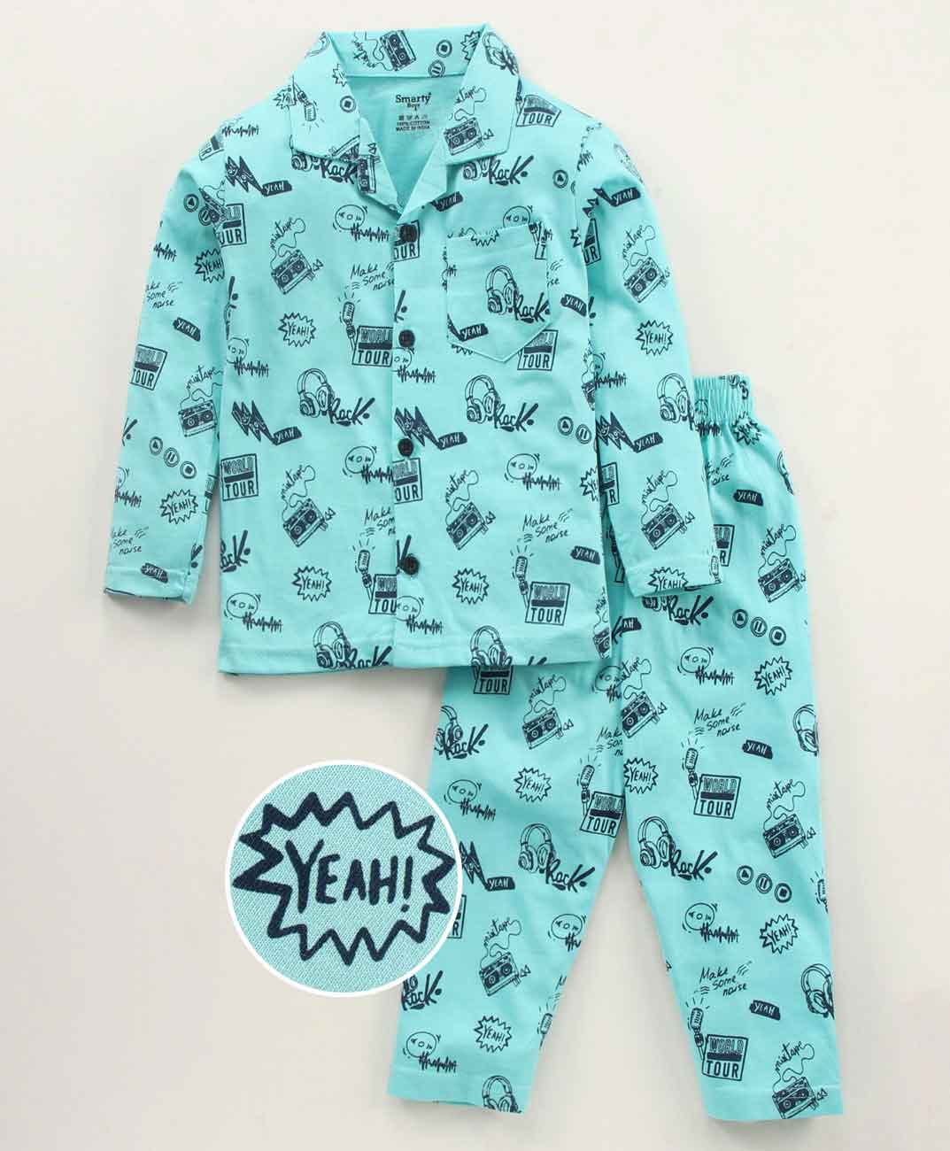 Cotton Sinker Full Sleeves Night Suit Text Print