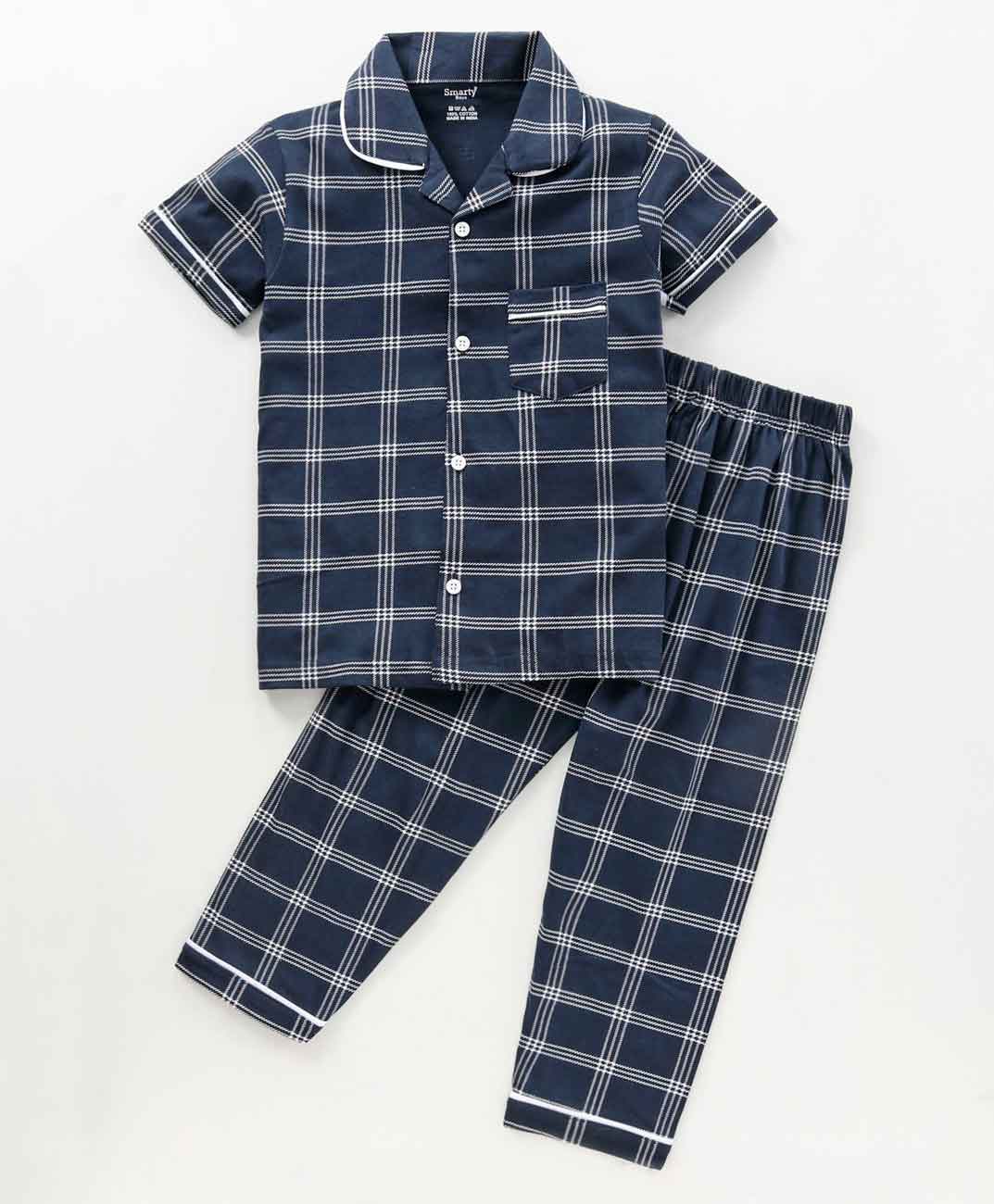 Collar neck shirt with front buttons and full length pyjama for boys