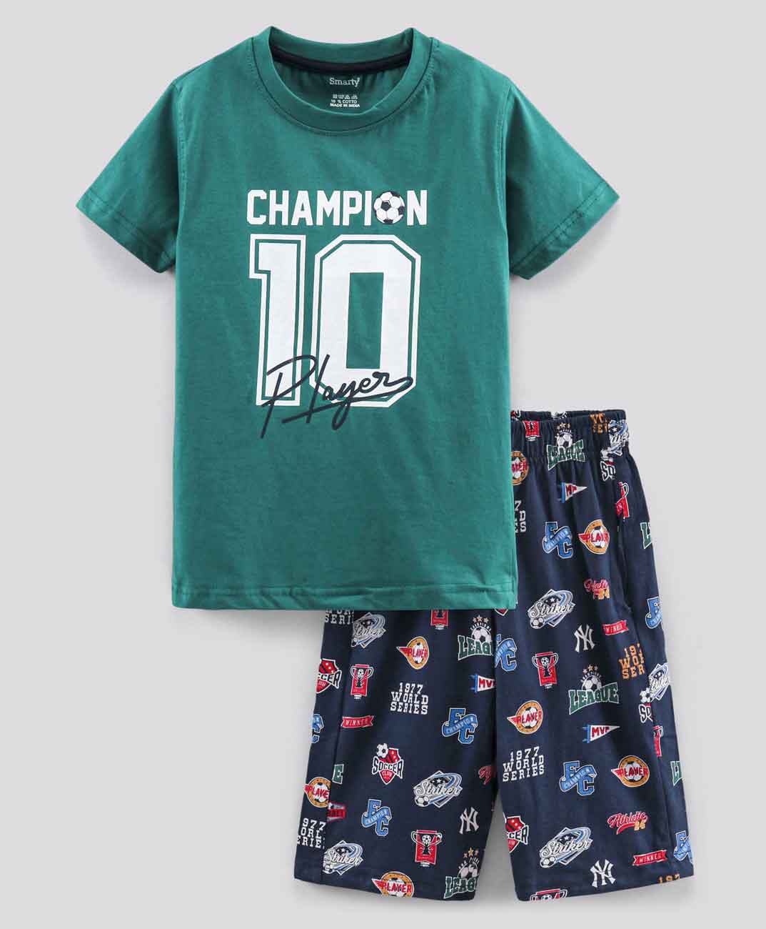 Set of comfy round neck t-shirt with rib at neck & matching capri for boys