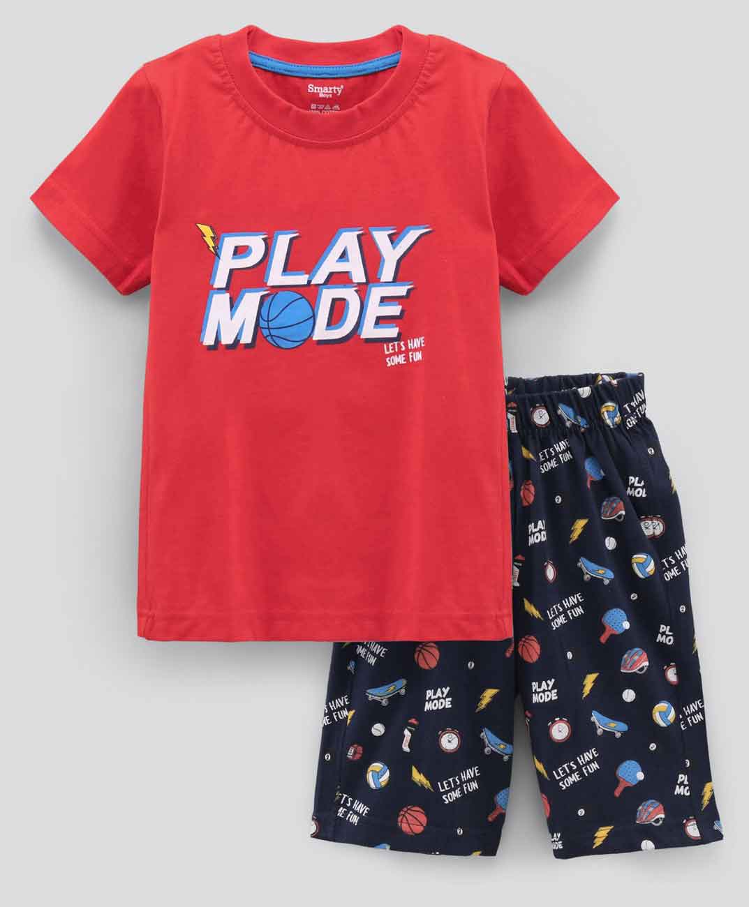 Set of comfy round neck t-shirt with rib at neck & shorts for boys