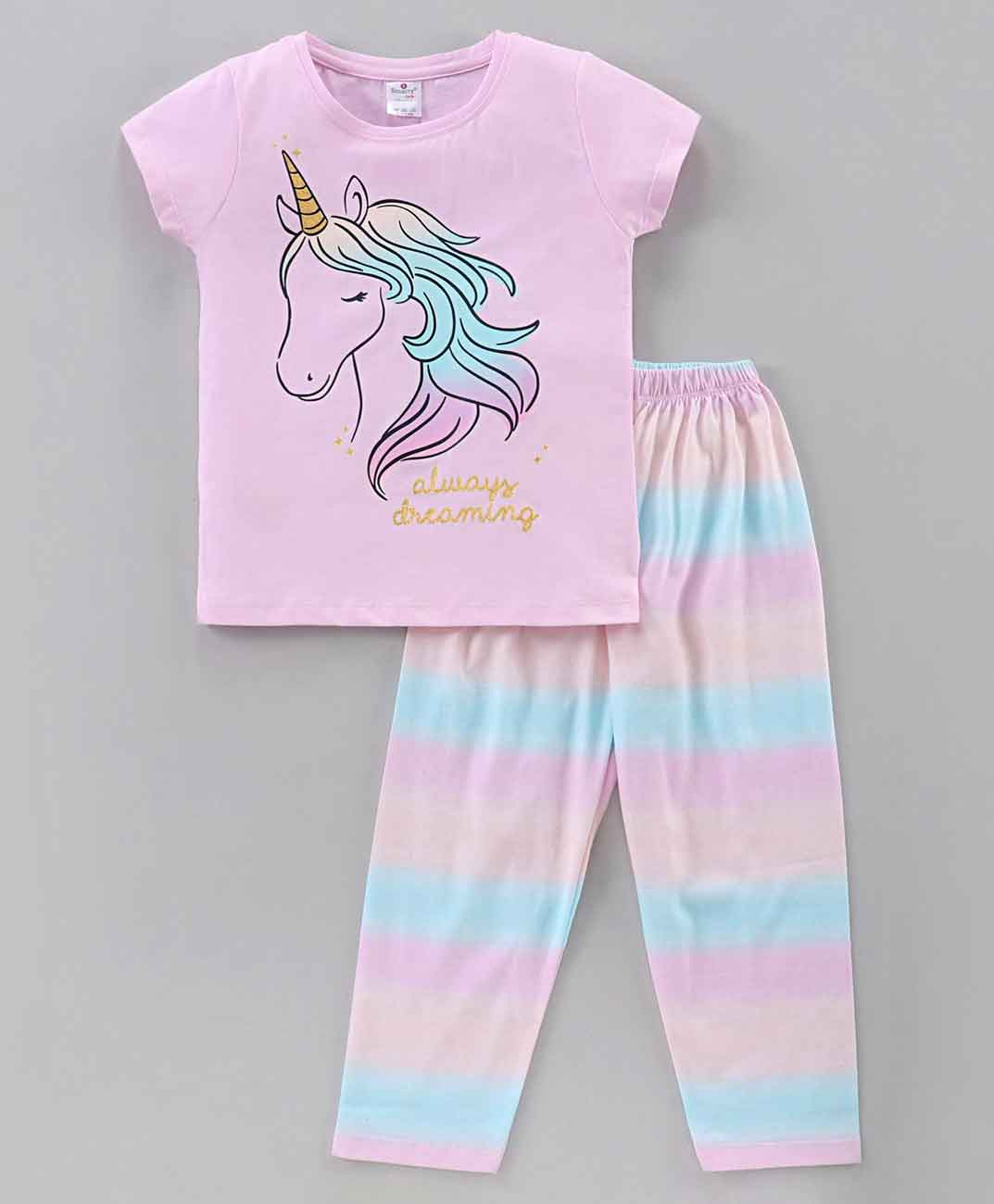 Comfortable round neck pullover tee & soft elastic waist pyjama for girls